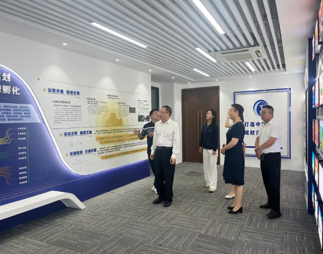 調研期間,章理中一行參觀了相關公司的成果展廳。集團文匯傳媒有限公司總經理王騰、集團總編室副主任魏俊杰、視頻中心主持人事業部副總監高佳、星級主持人許萌萌、技術與產品中心一部副總監馬浩翔參加調研。